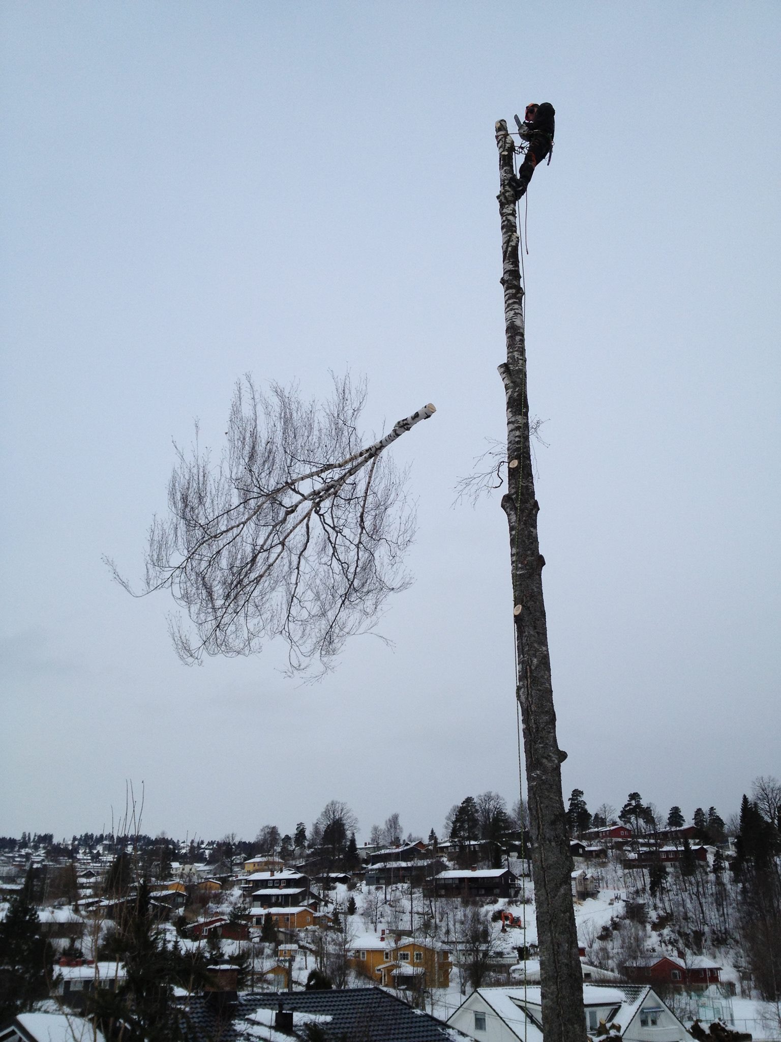 Om treet vokser over hus, kabler e.l. kan deler av treet fires trygt ned med tau for og unngå skade på eiendom. Kranbil kan også bli brukt for og gjøre ting sikkert og effektivt. Med gode rutiner og lang erfaring kan vi utføre alle jobber raskt og effektivt til en fornuftig pris.